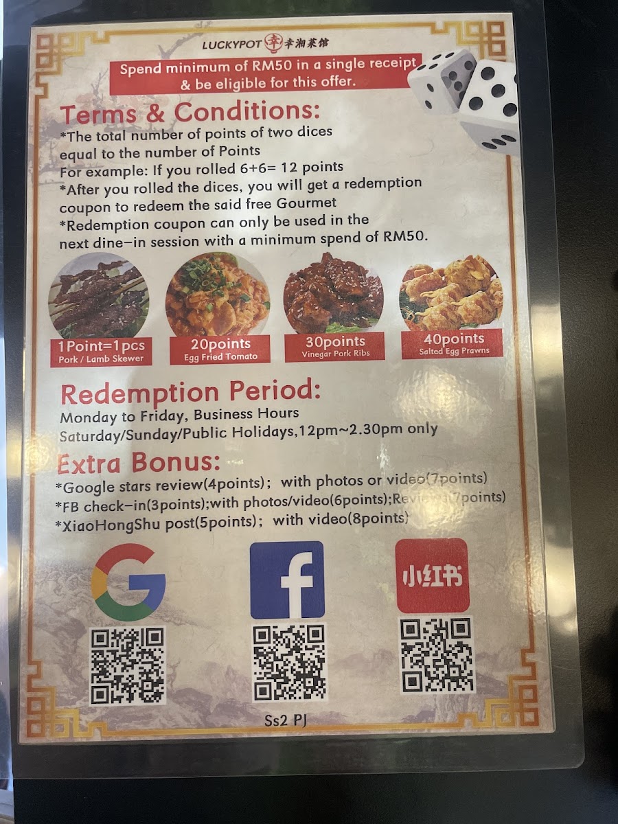 Luckypot SS2 Restaurant 八打灵幸湘菜馆 | Restoran Luckypot SS2 Menu